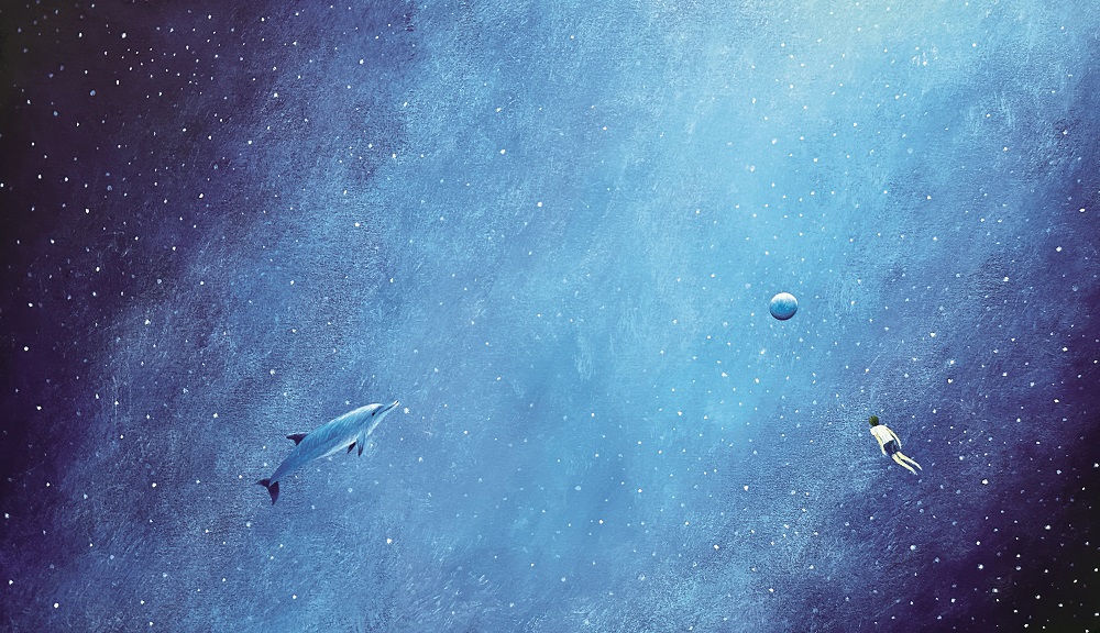 葉祥明《Double moon》(『詩とメルヘン』1988年10月号/サンリオ刊/原画)