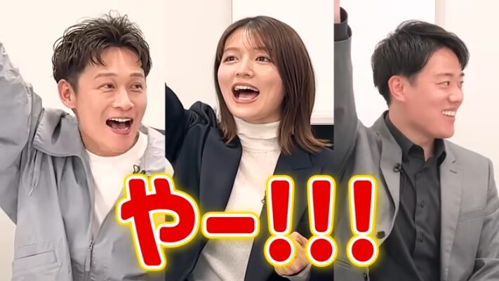 大吉アナが「全員共有でできると思うけど…体操の隊形に開け!」と号令をかけると、当然のように「やー!」と片腕を掲げて叫ぶ3人。