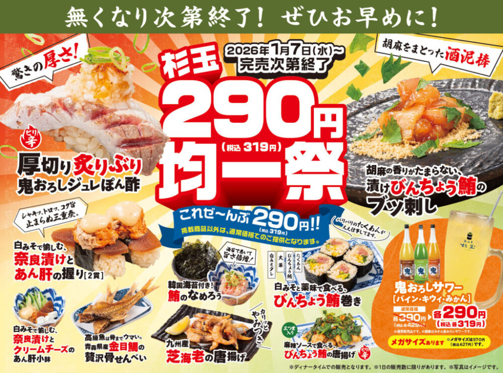 スシローの大衆寿司居酒屋「鮨 酒 肴 杉玉」に、期間限定メニューが登場しています。