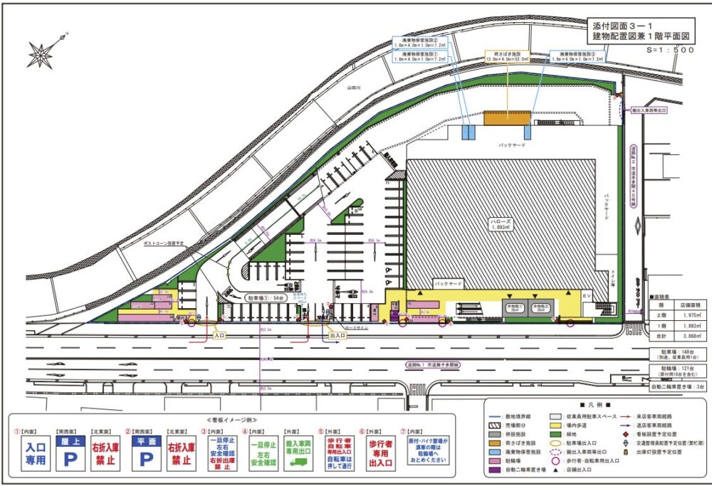 建物は2階+屋上の3フロアで構成されていて、『ハローズ』が入るのは1階部分。2階には「しまむら」ともう1店舗ができる予定です。
