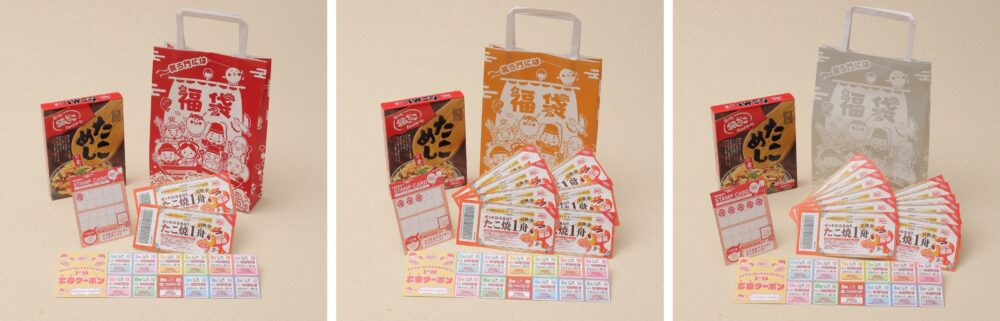 ・福袋は、ご購入時・商品引換時ともに、銀だこスタンプカード(紙、デジタル共に)への捺印はありません