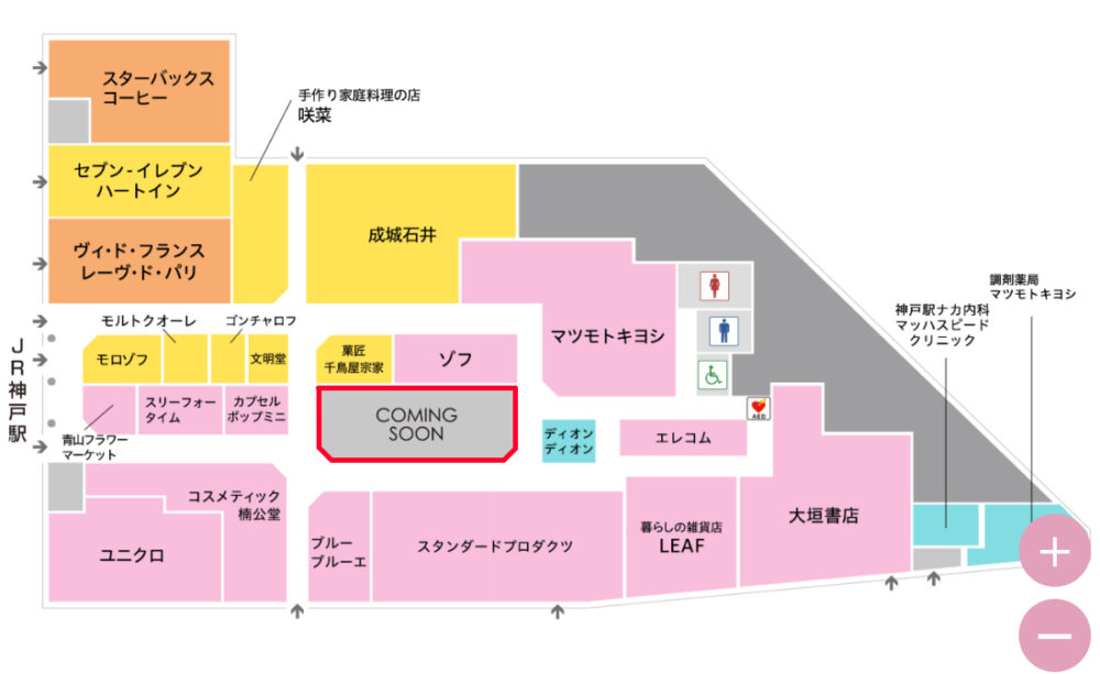 JR神戸駅にある「プリコ神戸」の空き店舗スペースには、化粧品が揃うセレクトショップができるそうです。
