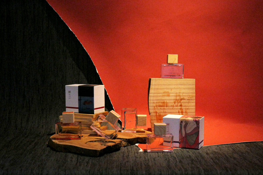 今回は、香水ブランド「破天荒」とコラボレーションした展示内容になっています。
