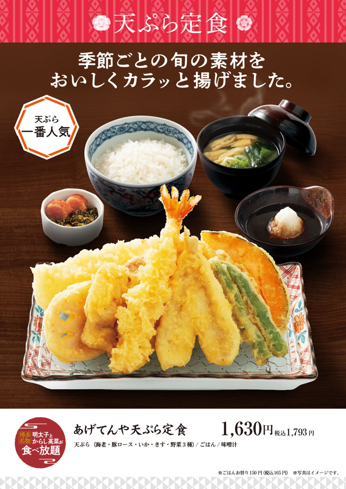 イオンモール神戸北に、季節の「天ぷら」が楽しめる『博多天麩羅 あげてんや』が3月26日(木)よりオープンします。