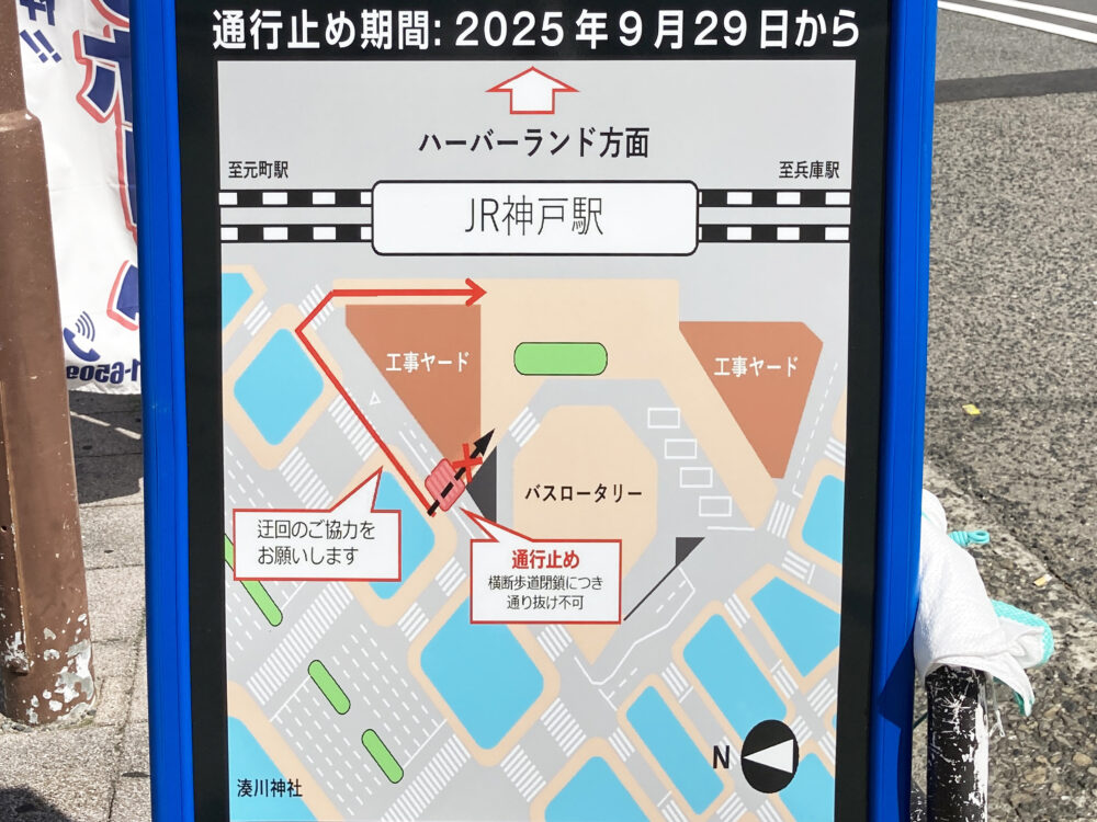 神戸駅から山側に渡る「横断歩道」が、なくなってます。