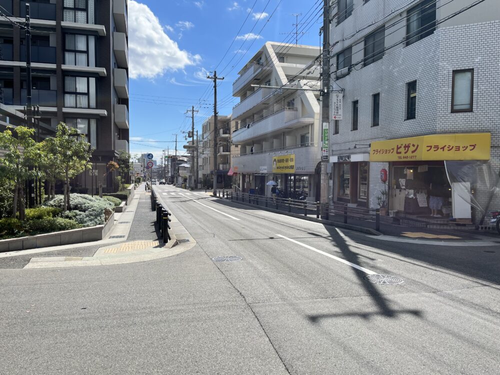 南側を見るとこのような感じ。このまま進むと「住吉公園」や「住吉公園テニスコート」が見えてきます。7分ほど歩くと「阪神住吉駅」があります。