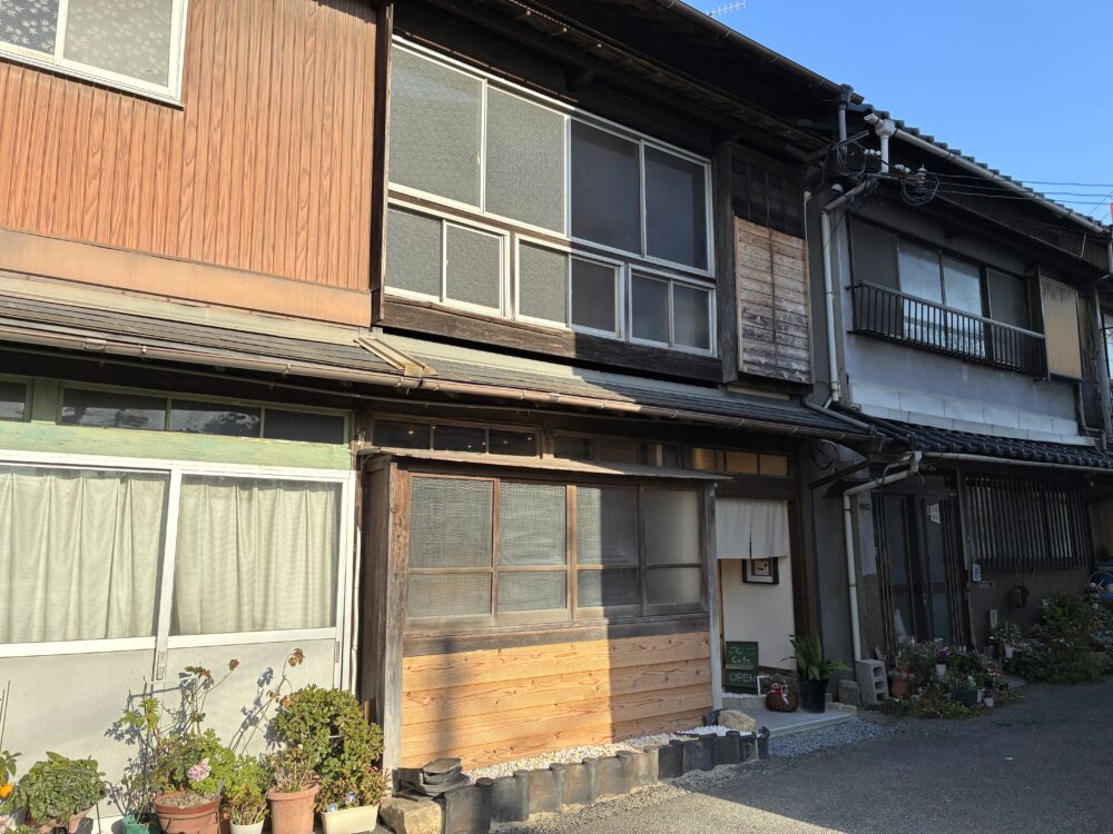 お店は味のある古民家で、入口にはベージュの暖簾と、店名とOPENの文字が書かれた黒板が置かれています。周囲は交通量が多いですが、一本入ると一気に落ち着いた雰囲気ですね。