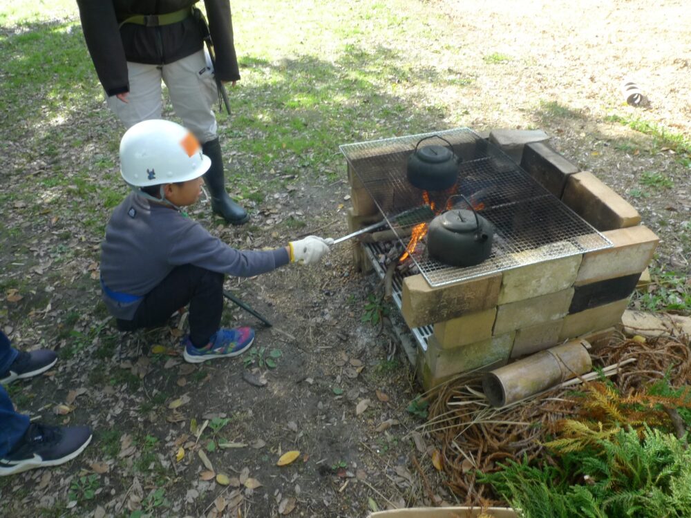 看板作りだけでなく、子どもたちは「竹コップづくり」も体験。自然のなかでおこした火を使って、自分たちで採った竹から身近なコップを作れるのは、なかなかない経験で、思い出に残りそうですね。