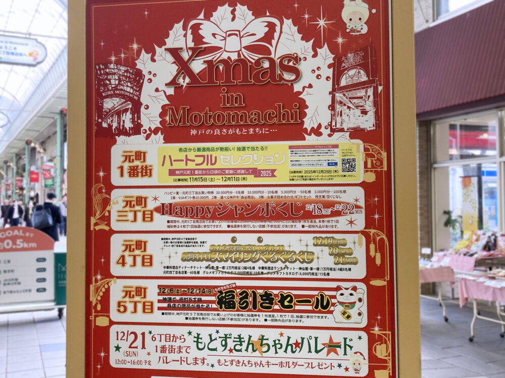 元町商店街では、各エリアごとにクリスマス企画が用意されていて、最高3万円分のお買い物券や「神戸牛」が当たる「HAPPYジャンボくじ」(3丁目)やパレード(6丁目)が行われる予定です。