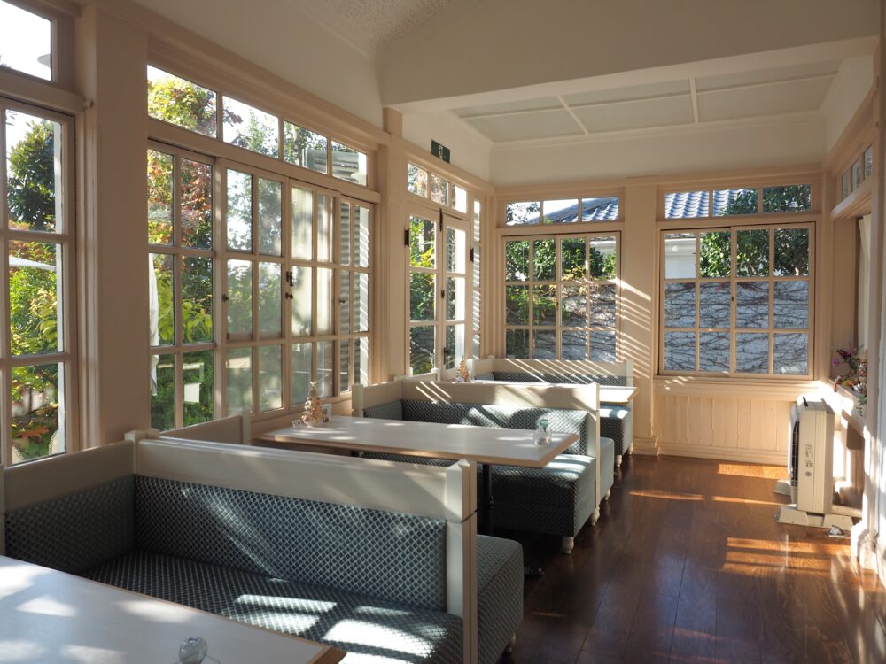 そのほか、明治期のオリジナルとも言える鮮やかな青のタイル張りの暖炉がある部屋や、白を貴重とした落ち着いた雰囲気の部屋など、北野異人館のカフェならではのインテリアになってます。