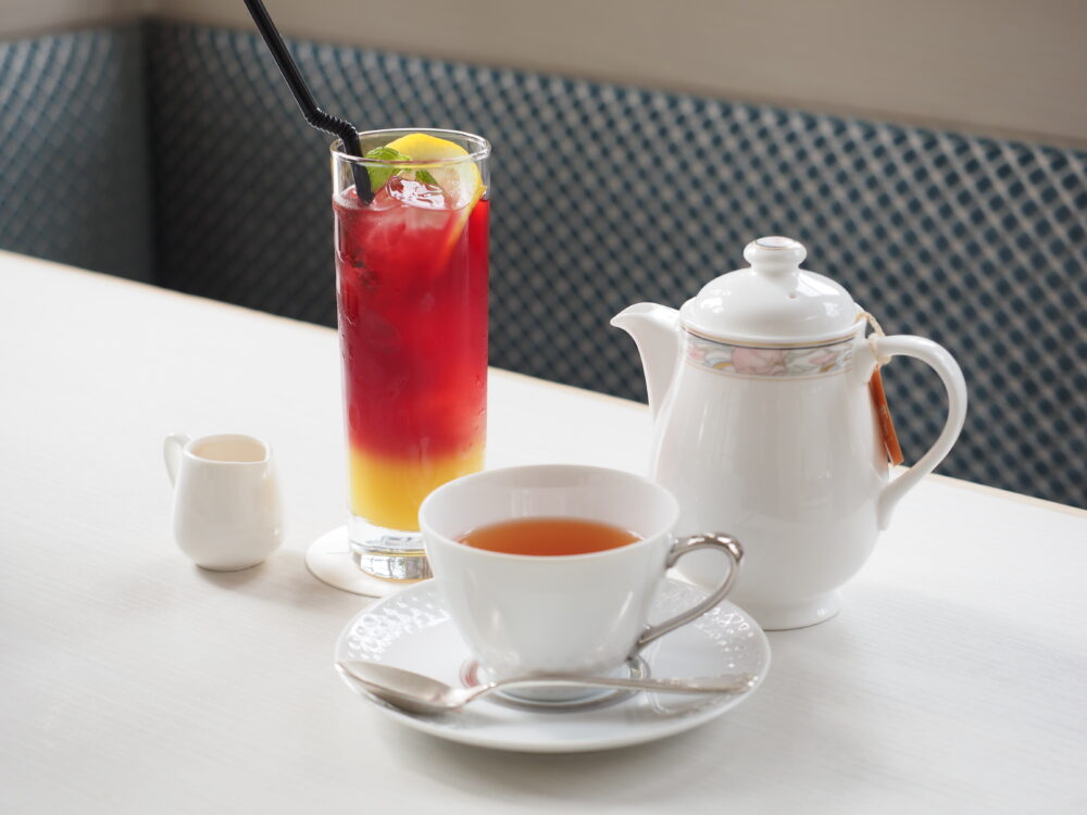 紅茶のポットには、3杯分くらい入っていて、ゆっくり話したいときに嬉しいですね。コーヒーもおかわり自由ですよ。