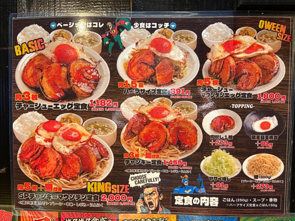ほかにもチャーシューの枚数や玉子の数が増量した「チャーシューマウンテンエッグ定食(1,980円)」や、特製麺が敷かれた「チャンキー定食(1,600円)」など、ボリューム満点なメニューも。