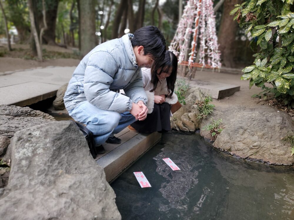 境内奥に広がる生田の森を進むと現れる「金龍泉」にそっと浮かべて、少しずつ文字が浮かび上がってくるのを待つ時間は、カップルや友達同士でも自然と会話が弾み、デートの最初にもぴったり!