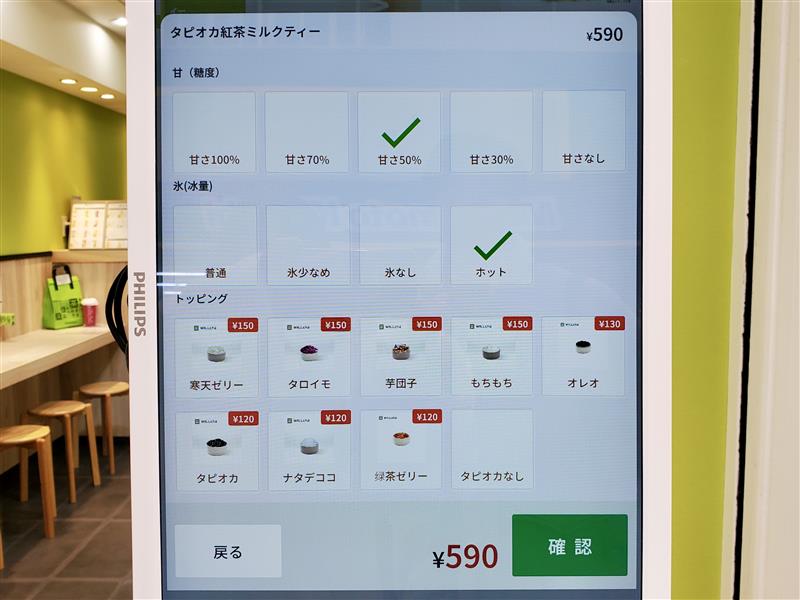 今回は、ホットの「タピオカ紅茶ミルクティー(税込590円)」と「ナタデココ紅茶ミルクティー(税込590円)」をテイクアウト。