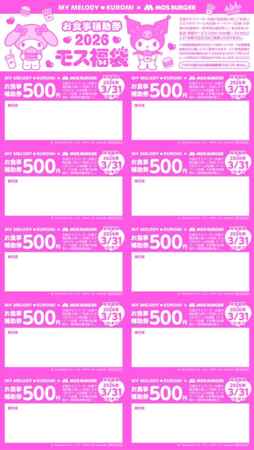 モスバーガーでは、マイメロディが 50 周年、クロミが 20 周年を迎えた2025年のアニバーサリーイヤーに合わせたコラボ企画を実施していて、この『福袋2026』は、コラボ企画の第2弾として発売されます。