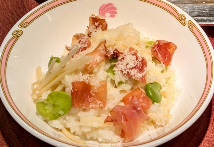 目の前で料理して提供されるライブコーナーでは「筍とハモンセラーノのチーズリゾット」を堪能できます。