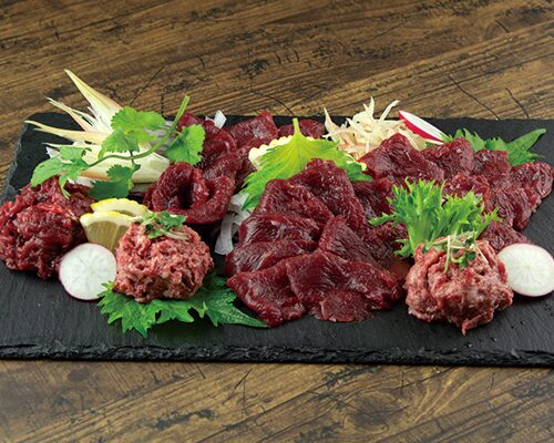 阿蘇の大自然の中の自社ファームで育てられた国産の馬刺しを購入することができます。
