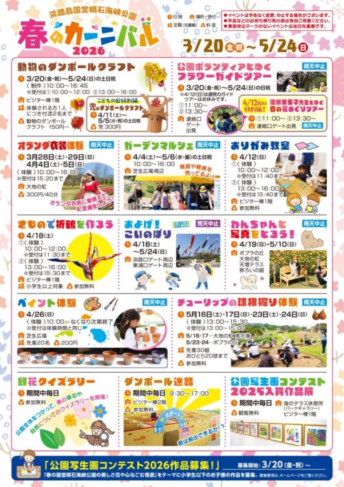 淡路島の国営明石海峡公園で、チューリップなどの開花に合わせたイベントが開催されています。