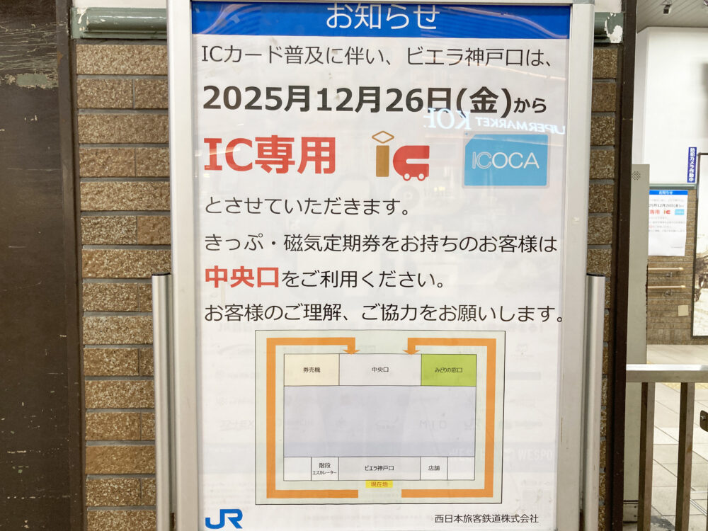 この「ビエラ神戸口」が「IC専用」となるのは、2025年12月26日(金)から。