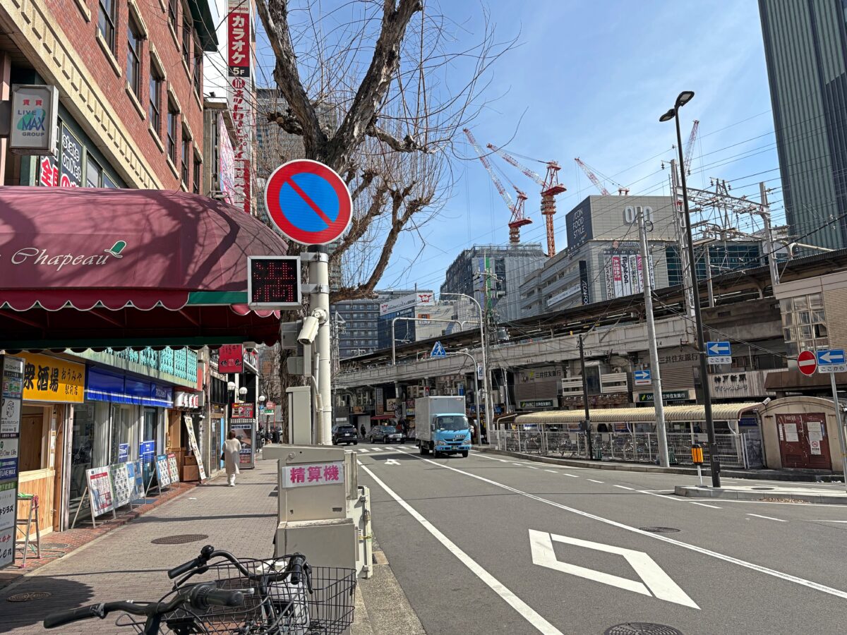 東側を向くとこんな感じ。同じ並びには「サイゼリヤ」や「セブン-イレブン」があります。