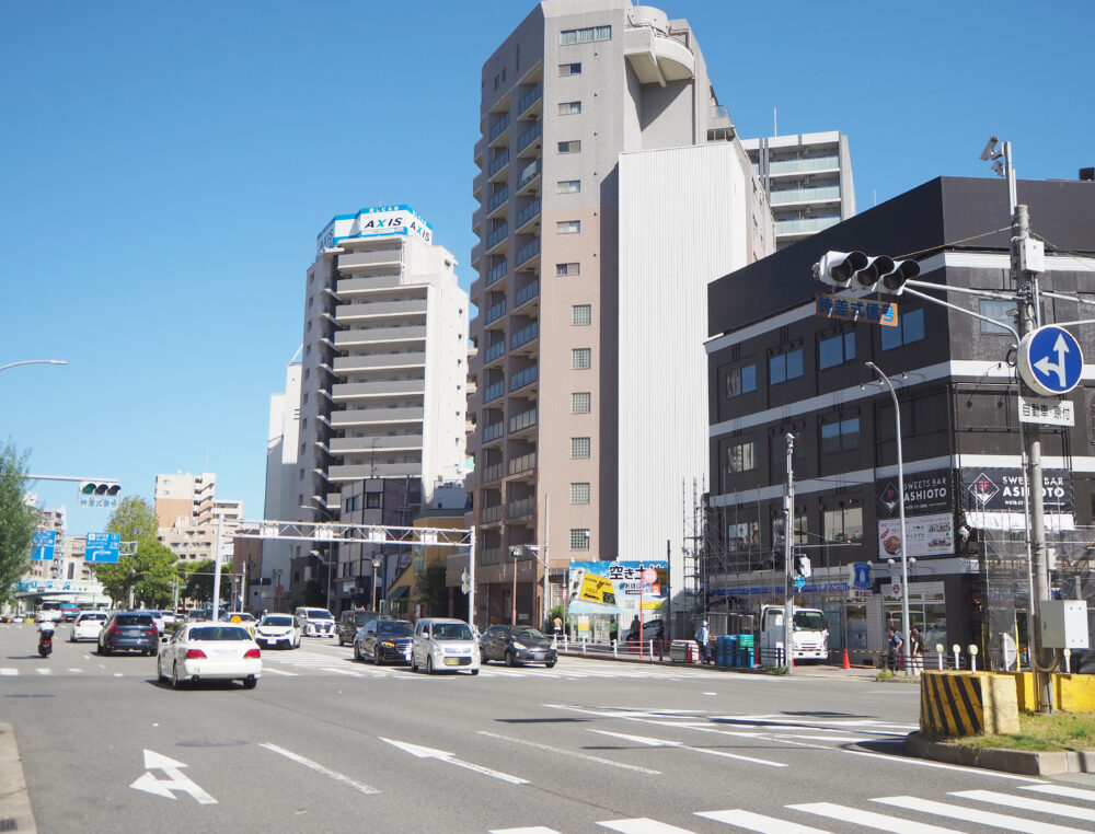 1階にローソンが入っているビルの2階にできる予定で、このまま少し進むと加納町交差点のあたりに出ます。
