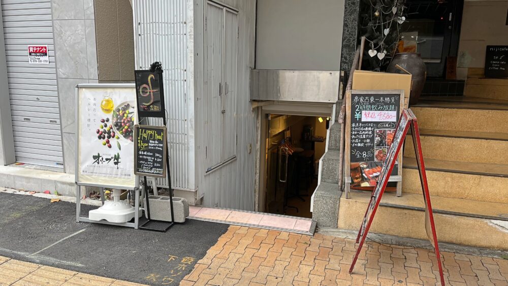 反対側から見るとこんな感じで、近くには弁当店「かまどや」や中華料理店「龍虎」、モンブラン専門店「モンテブランコ」などがあります。