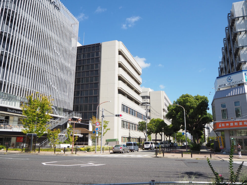 道路を挟んだ正面には「阪神調剤薬局 神大店」や神戸大学 医学研究科の研究棟などがあります。