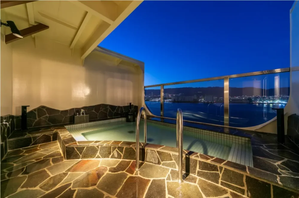 船内には大浴場のほかに、「露天風呂」も完備。瀬戸内の満点の星空やライトアップされた橋・街並みの夜景と海上の風を感じながら楽しむことができるそう。