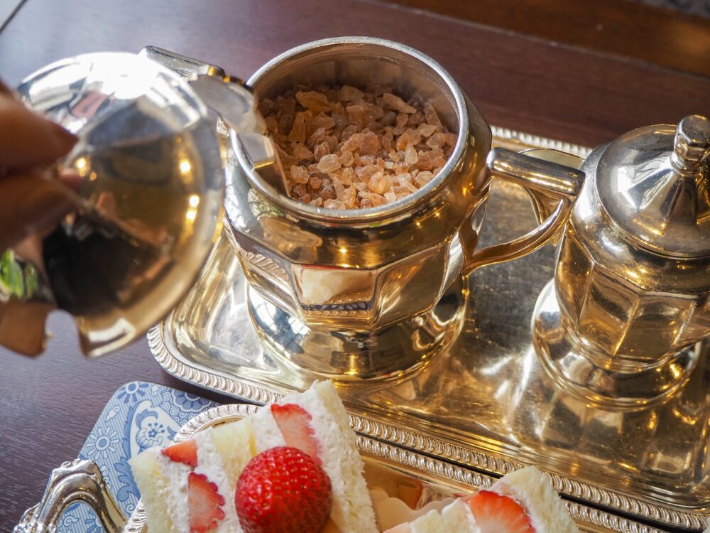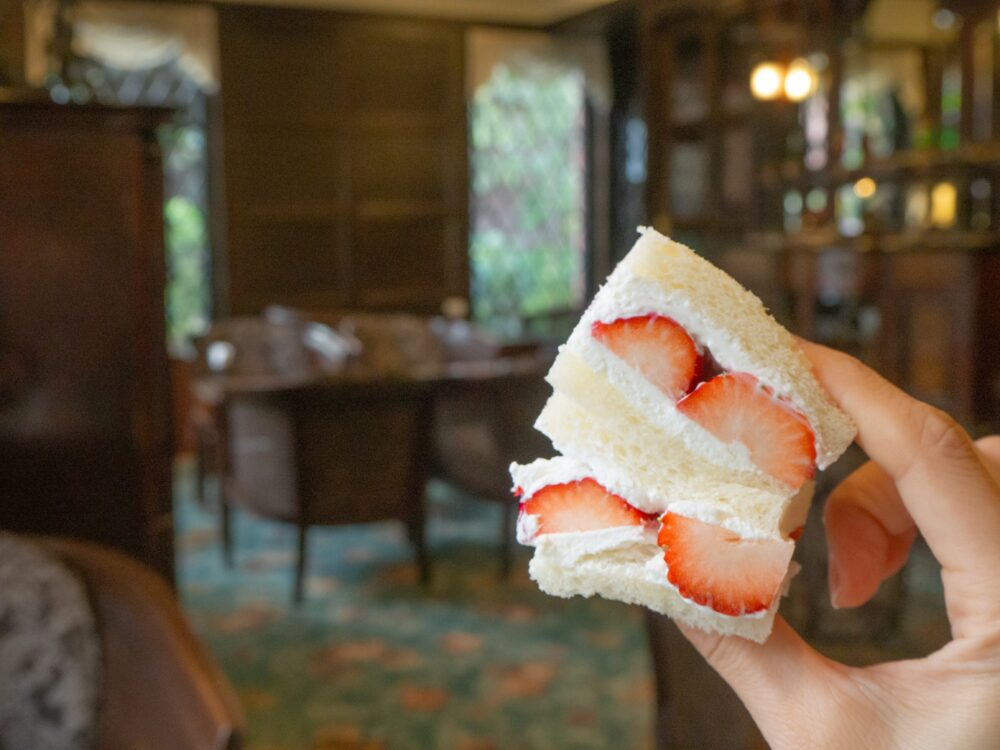 上品な甘さの苺サンドと珈琲の相性は抜群。いちごの品種は時期によって異なるそうですが、この日はワンプレートに「さちのか」が10~12粒ほど使われていたそう。甘さだけでなく酸味も感じる品種を選ぶことで、くどくなることもなく最後まで楽しめますよ。