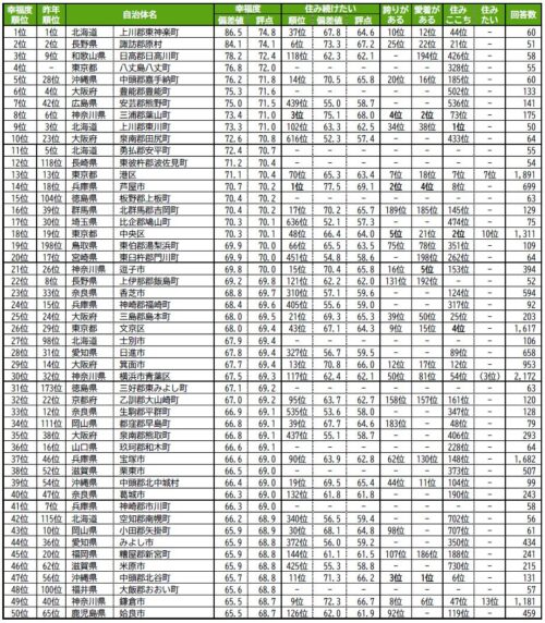 ・「街の幸福度(自治体)」「住み続けたい街(自治体)」は、回答者50名以上の自治体を対象として集計しています。