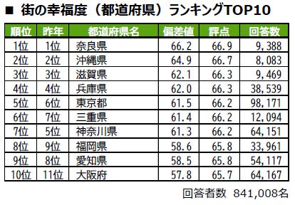 街の幸福度(都道府県)トップは、5年連続で奈良県
