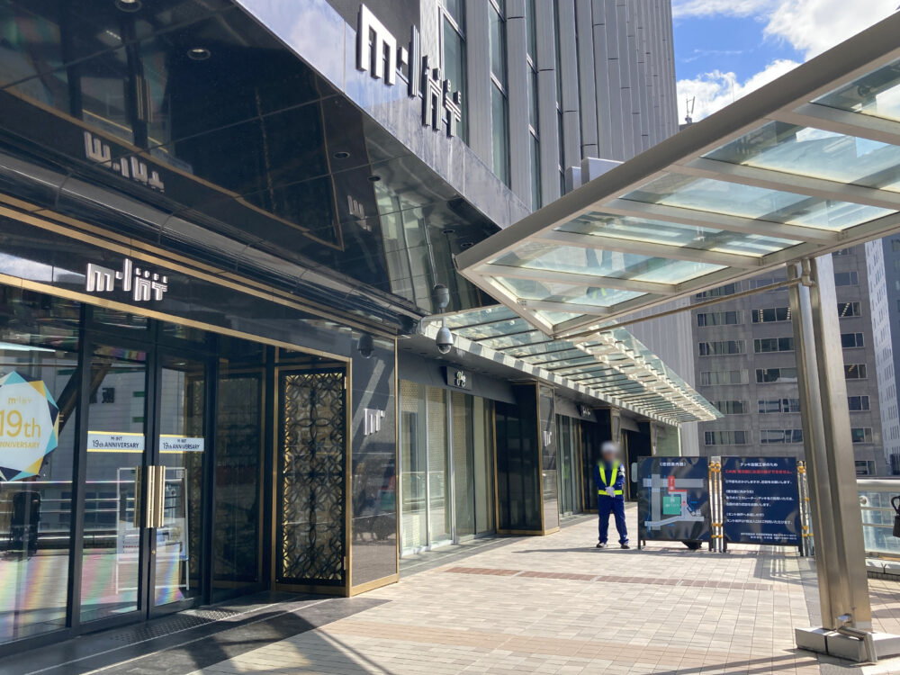ミント神戸の入り口前でも、デッキからだいぶ手前のところにお知らせの看板が設置されています。