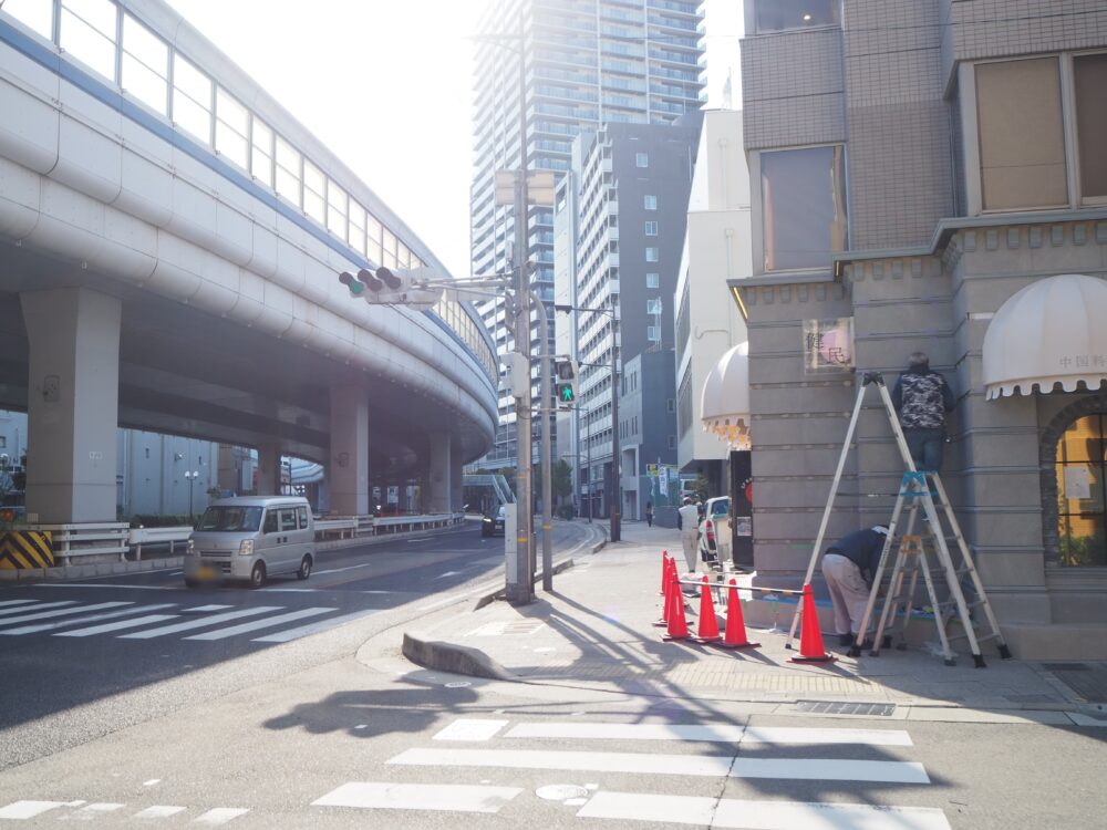 反対に西側を向くとこんな感じで、このまま進むと、神戸ハーバーランド温泉 万葉倶楽部がある「プロメナ神戸」や「ホテルクラウンパレス神戸」のあたりに着きます。