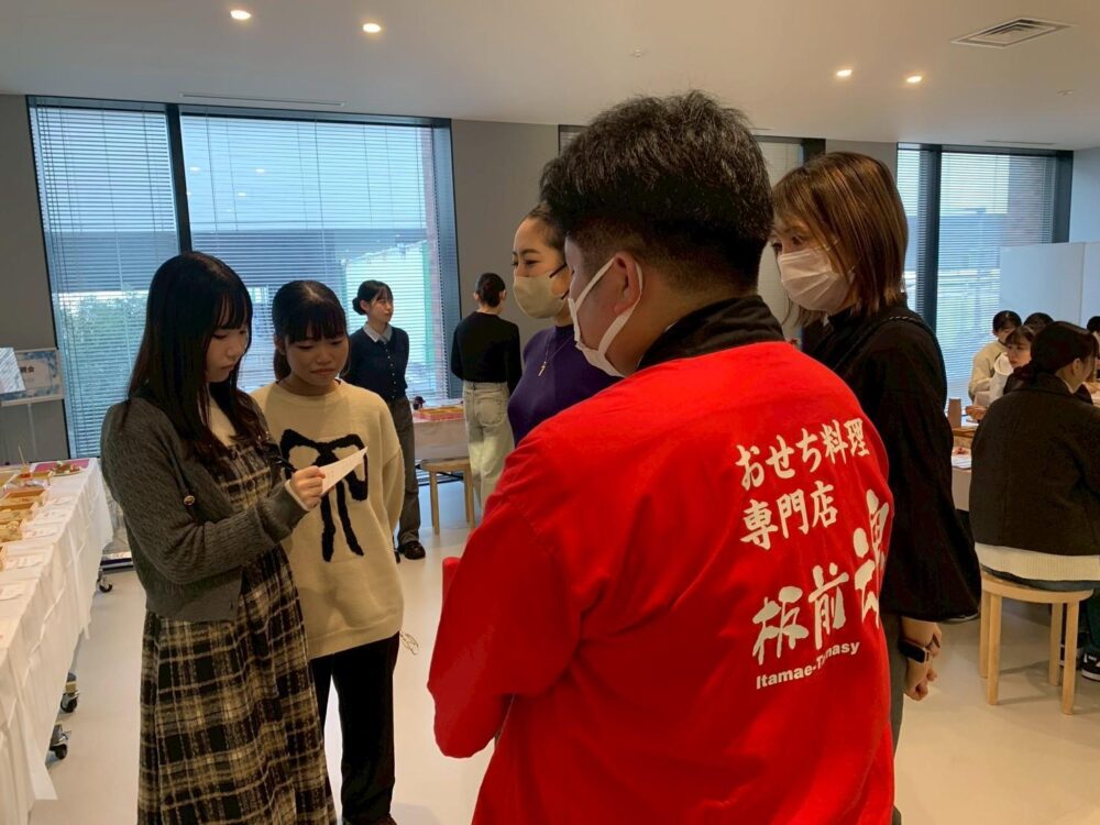 このイベントは、武庫川女子大学・大森ゼミの学生たちが企画・運営し、おせち料理専門店「板前魂」の協力を得て実現。おせちをビュッフェ形式にするという学生発信のアイデアとおせち専門店の味が合わさった特別なイベントとなっています。