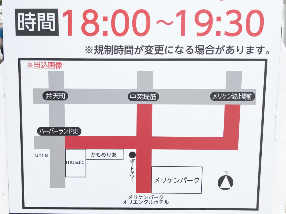 3方向から多くの人が集まってきますし、余裕をもってメリケンパークに着けるよう計画したほうがいいかもしれませんね。