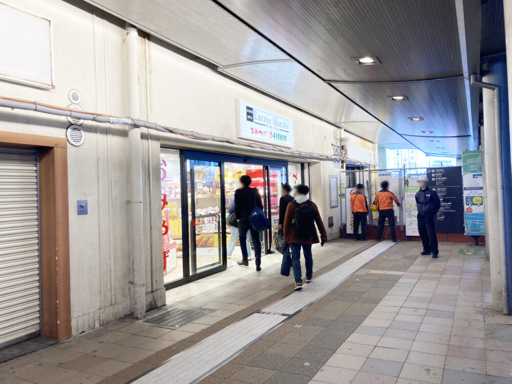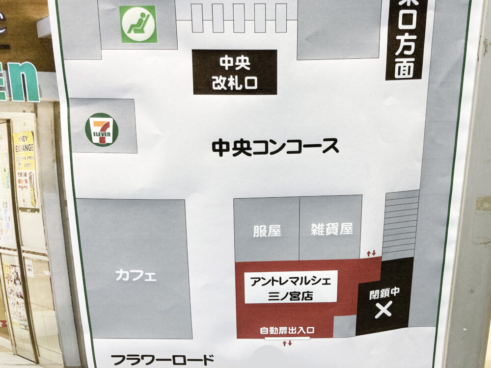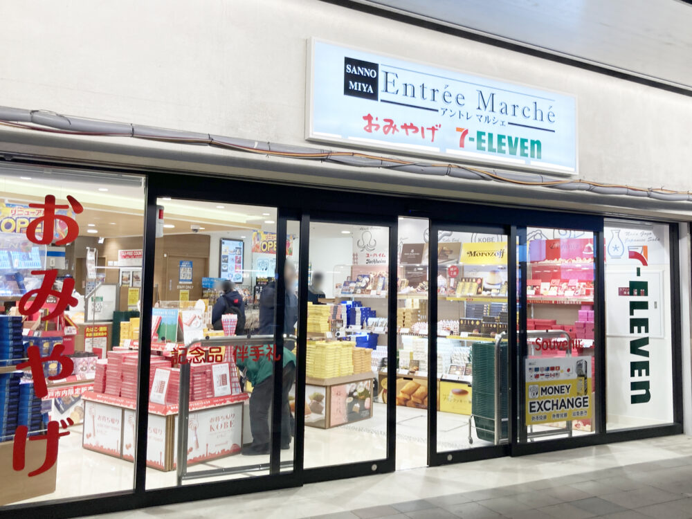 JR三ノ宮駅の中央改札の西側にある『アントレマルシェ三ノ宮店』は、セブンイレブンの通常の品揃えに加えて、神戸や関西のお土産物を扱うお店で、2025年9月末から一時休業を伴う改装工事をしていました。