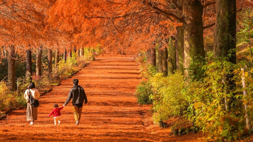 西緑地エリアを散歩している途中「ハワイ公園」に立ち寄ることに。大きなヤシの木が左右に立ち並ぶ間を歩いていると南国に来たかのような気分を味わえます。