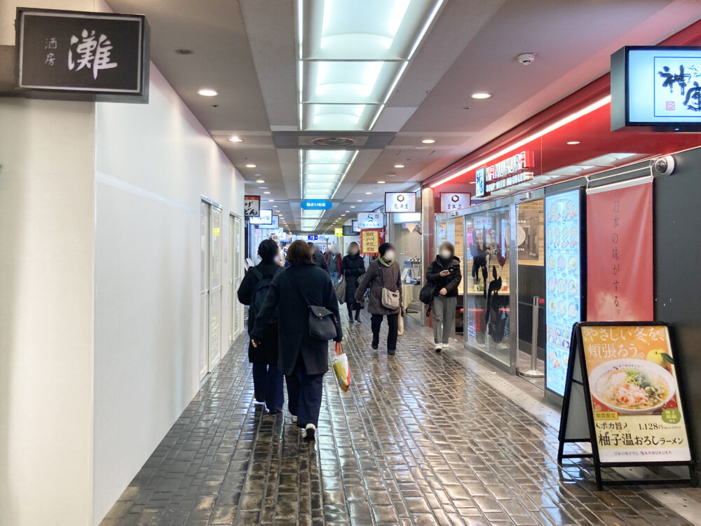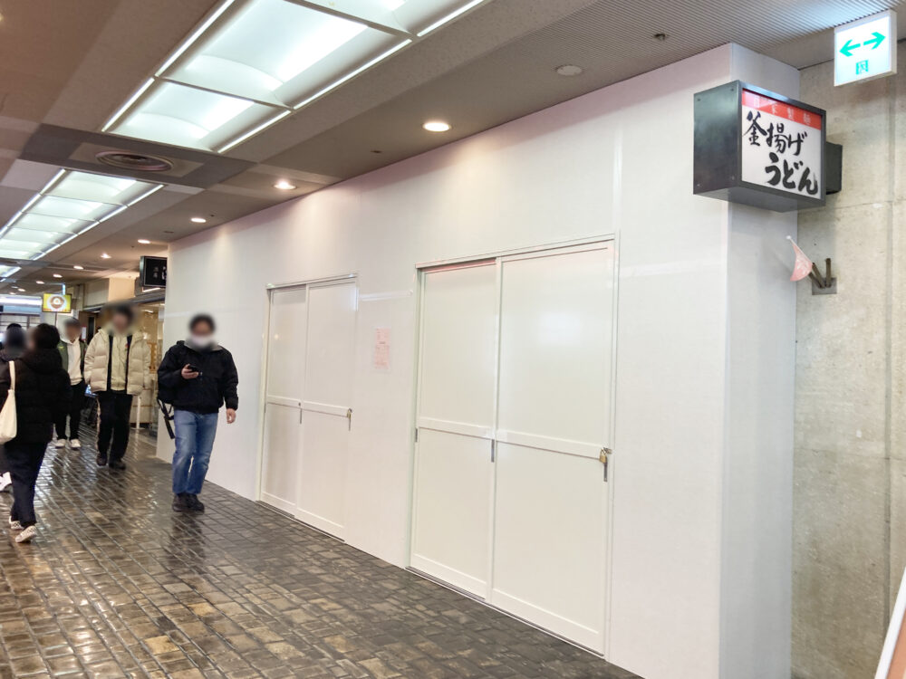 三宮の地下食堂街で、いつも賑わっているうどん店『丸亀製麺』が、閉まっています。