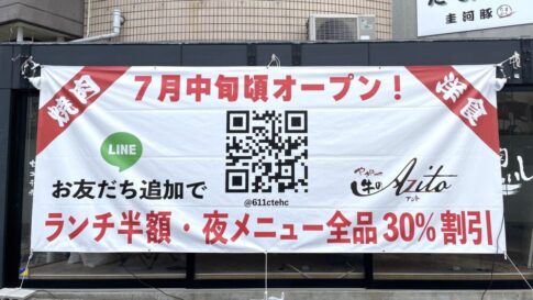反対側を向くとこんな感じ。向かい側には、リピーターさんも多い「うどん 直」や、「やきにく牛のAzito(アジト)」って焼肉店があるあたりです。