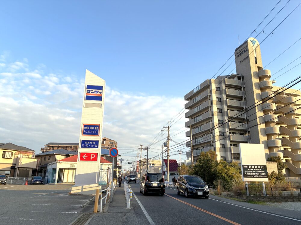 山陽 魚住駅から5分、県道718号線(旧浜国)沿いに、ディスカウントスーパー『サンディ』ができます。