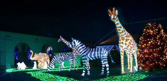 ホワイトタイガーやラクダ、アルパカなどの動物のLEDイルミネーションは動物園で見る動物とは一味違うかも。