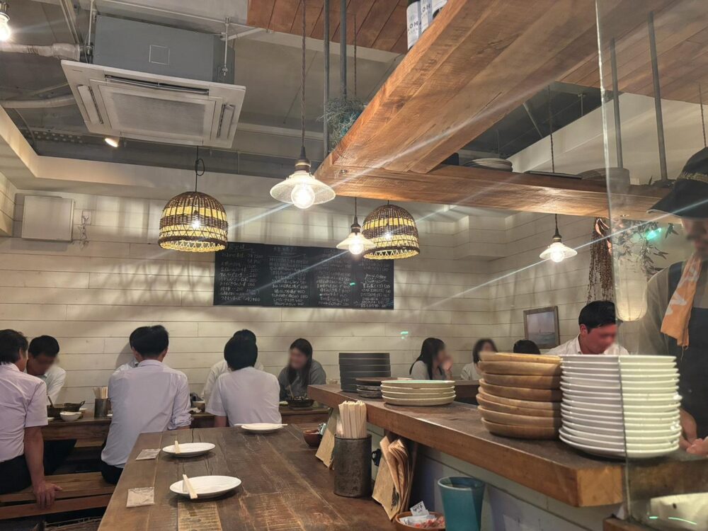 店内は木を基調とした温かみのある空間で、テーブル席(5名×3)とカウンター席(11席)を合わせた少人数向けの落ち着いた雰囲気。