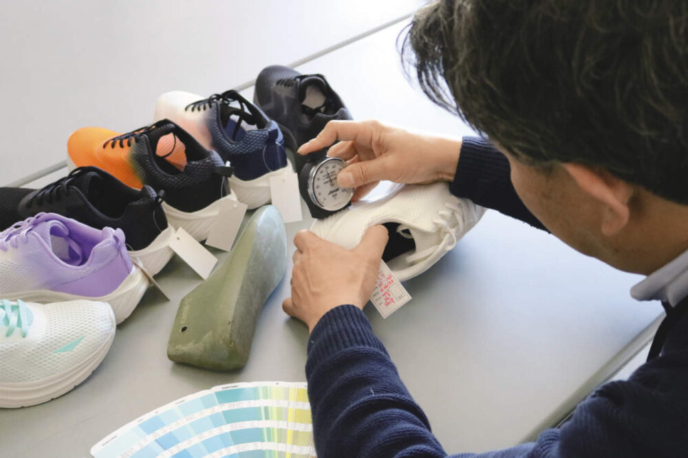 通勤にも使えるスポーティな厚底の新モデルスニーカーも感謝価格で販売。独自開発されたアウトソールは、硬さ・柔らかさともに「ちょうどいい」と感じられる硬度50度のEVA素材で、履き心地がいいのだそうです。