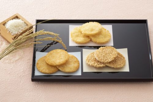 ◎砂糖しょうゆせんべい×7枚、揚げ塩せんべい×6枚、米つぶせんべい×6枚