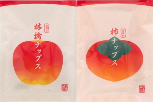今年収穫の国産果実”林檎”と”柿”を厚切りチップスに。旬の果実の味が楽しめます。