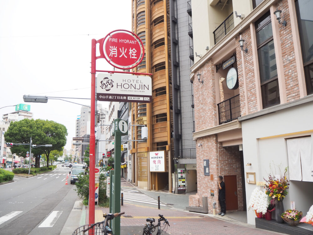 さらに進むとドーナツ店「.donut factory」や「神戸税務署」などもあるあたり。