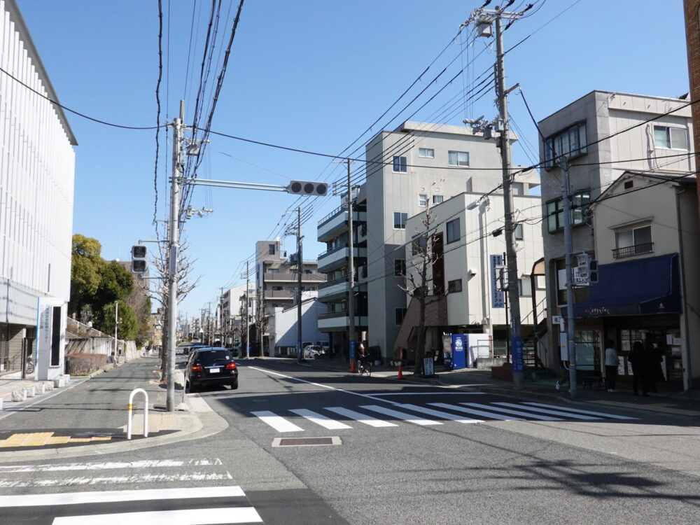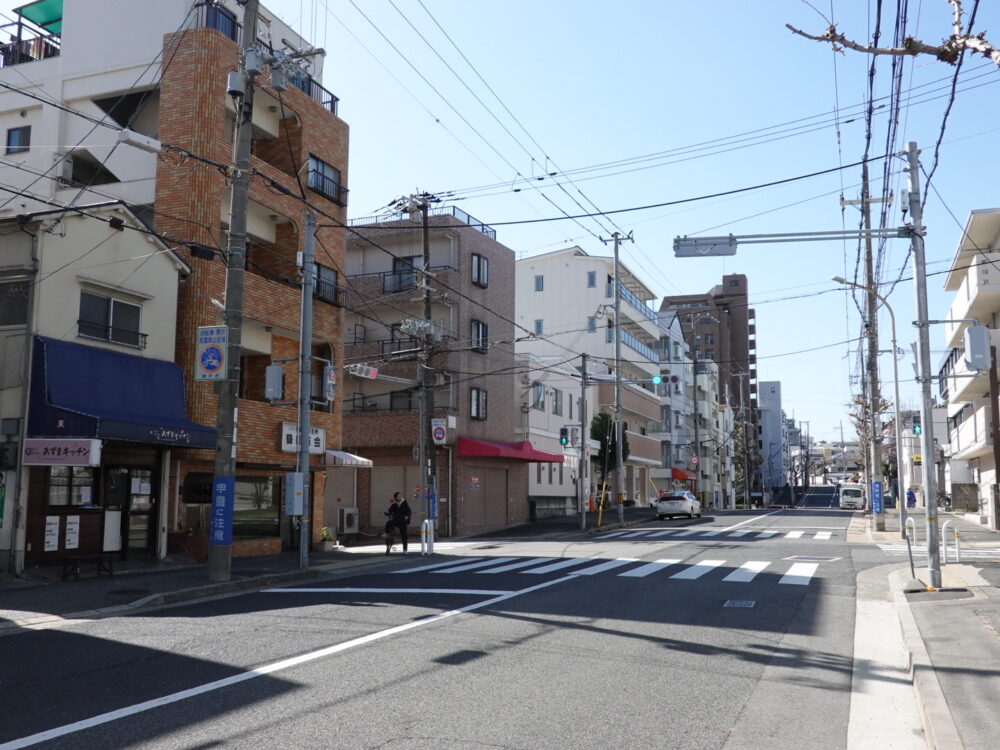 反対側を向くと、阪急 王子公園駅がある方向。この道をまっすぐ進んだ先には、「お食事処 しらたま」や「神戸 萩原珈琲店 まるもの‘‘あし跡‘‘」が、昨年夏頃にできてます。