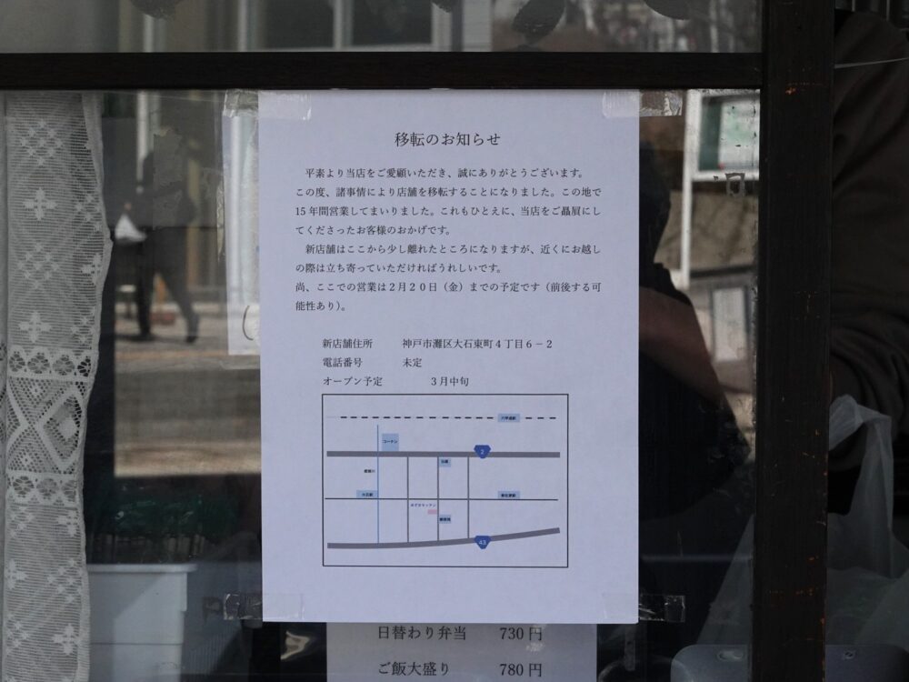 移転先は、阪神 大石駅から東側に歩いて7分ほど、「灘郵便局」の近く。3月中旬頃にオープン予定です。
