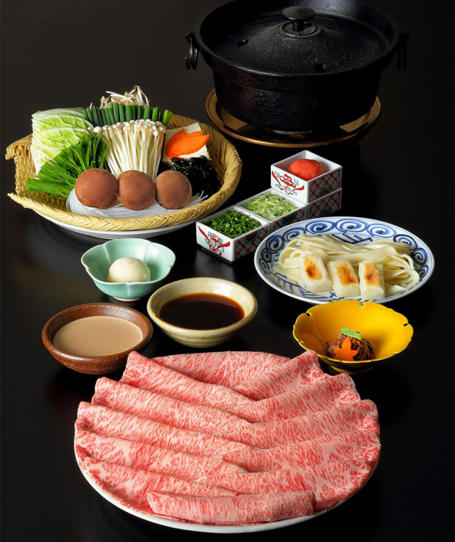 先付、しゃぶしゃぶ(肉・野菜盛)、きしめん・餅、御飯、香の物、デザート