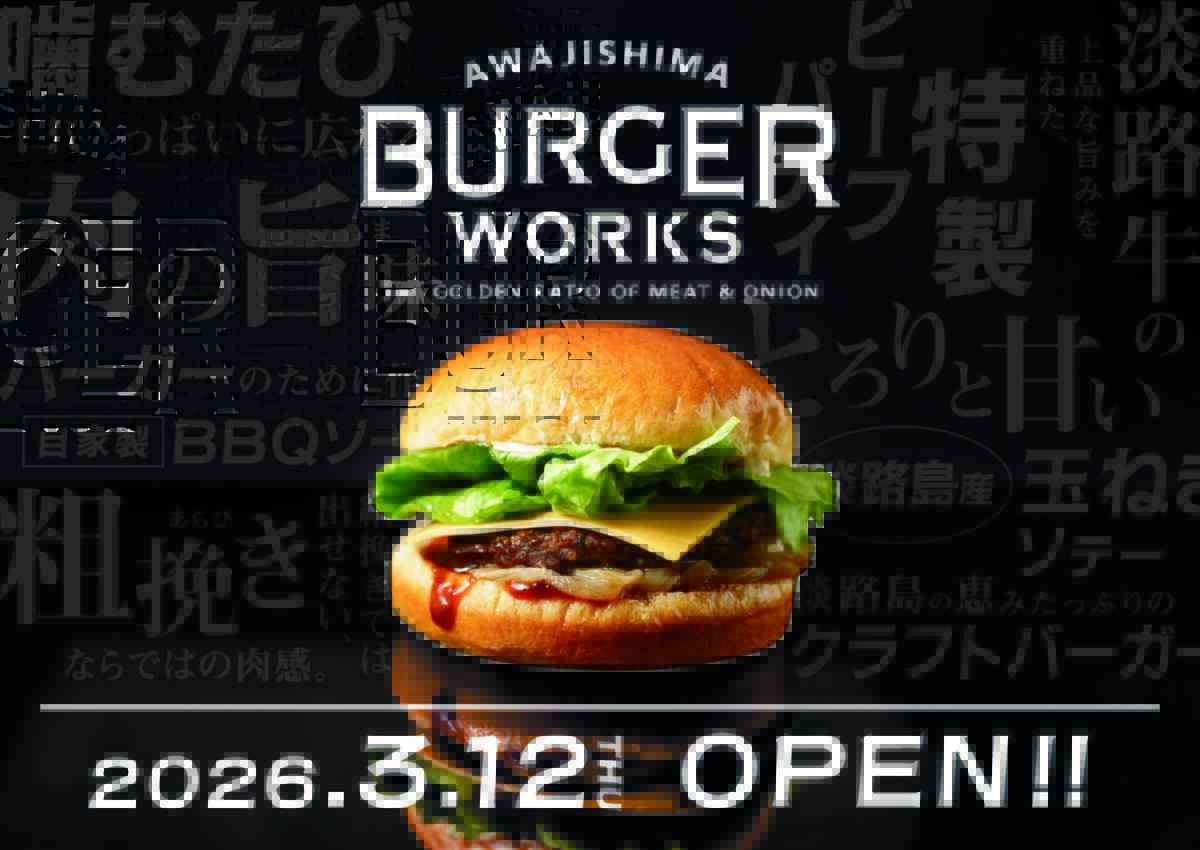 淡路サービスエリア(下り)にハンバーガー専門店『AWAJISHIMA BURGER WORKS』ができるみたいです。3月12日(木)オープン予定。